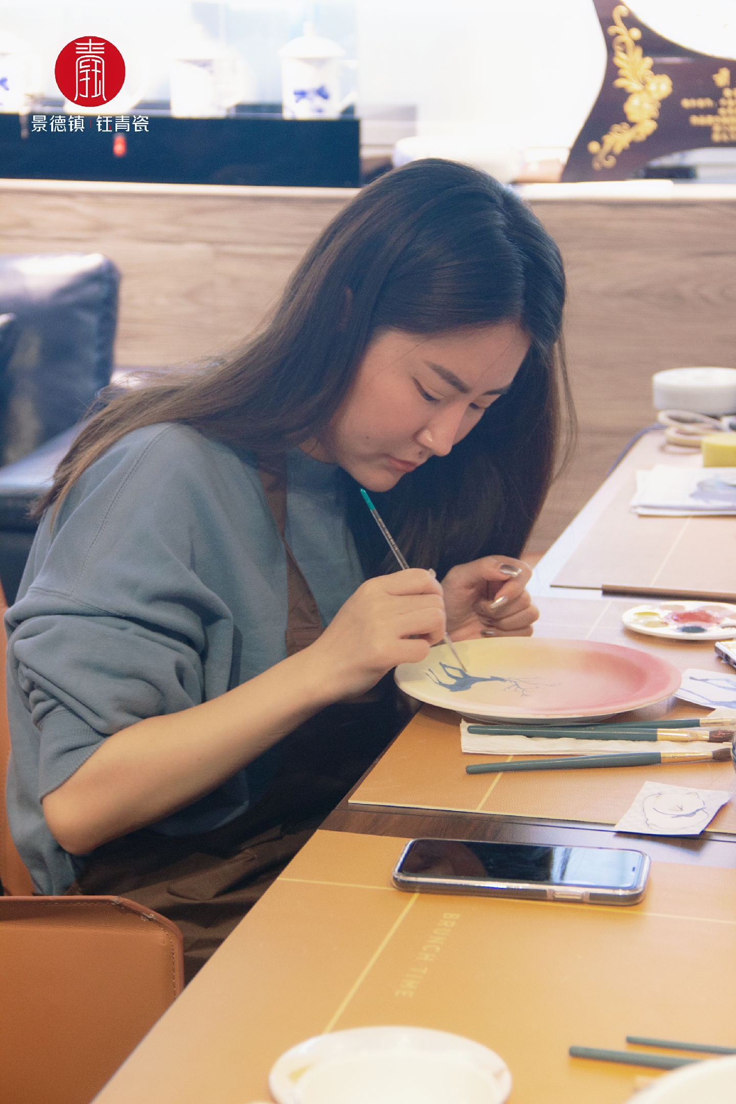 活动现场由景德镇钰青瓷工厂专业彩绘老师指导瓷绘技巧和色彩调配。