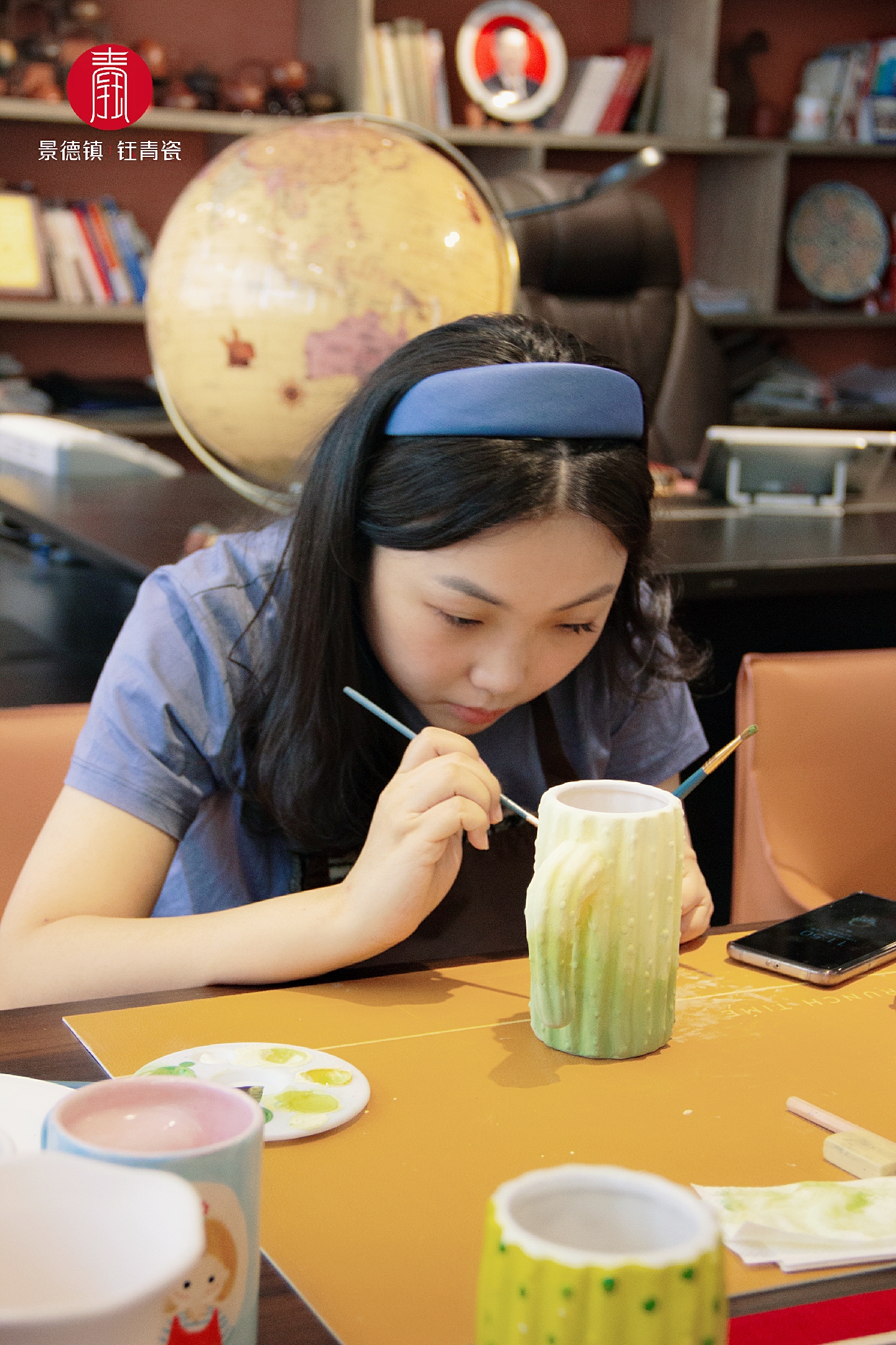 一支画笔,一碟颜料,一碗清水,一件瓷胚,每一个人都化身匠人与“艺术家”,将喜欢的风景植物,妙趣横生的动物,充满想象力的几何图形甚至是自己喜欢的文字、符号,落于瓷胚上。
