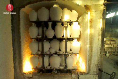 是成瓷的最后一道关键工序。它是将装有成坯的匣钵按窑位置放在窑床上,用松柴或槎柴烧至1270--1300度,采取先氧化焰,后还原焰的方法,分溜火、紧火、净火三个阶段,用一天一夜(24小时)的时间,把匣钵内的坯胎烧成瓷胎。