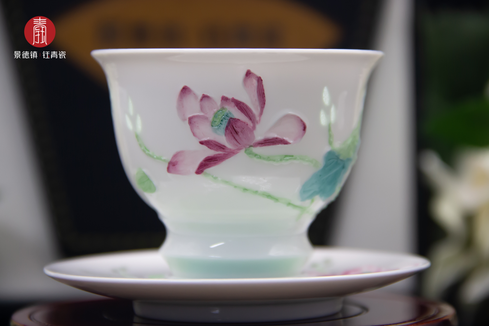 钰青玲珑瓷采用景德镇纯度最高的、独有的高岭土经1380度高温烧制而成,胎质细腻,釉质莹润。