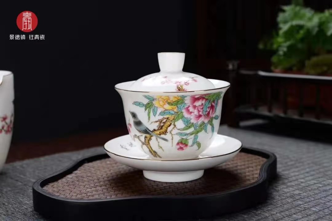 钰青粉彩瓷采用景德镇纯度最高的、独有的高岭土,瓷质细腻,釉面光洁。
