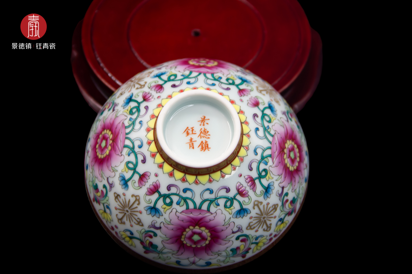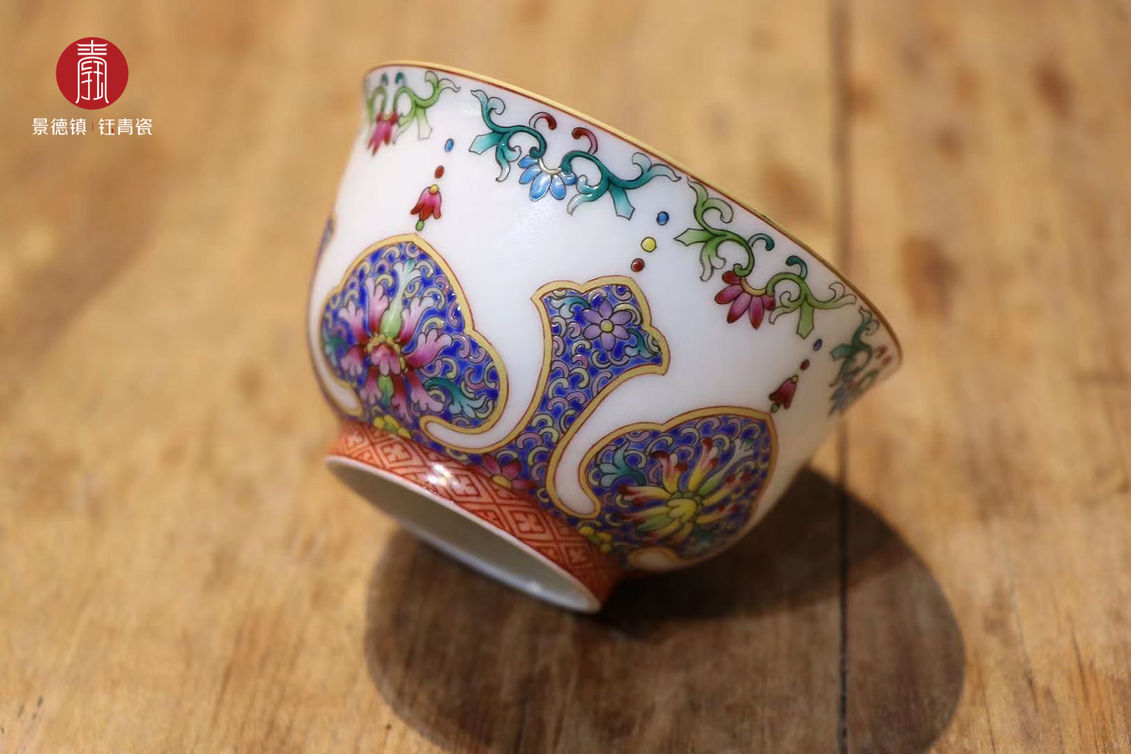 钰青珐琅彩主人杯采用景德镇纯度最高的、独有的高岭土经1380度高温烧制而成,胎质细腻,釉质莹润。