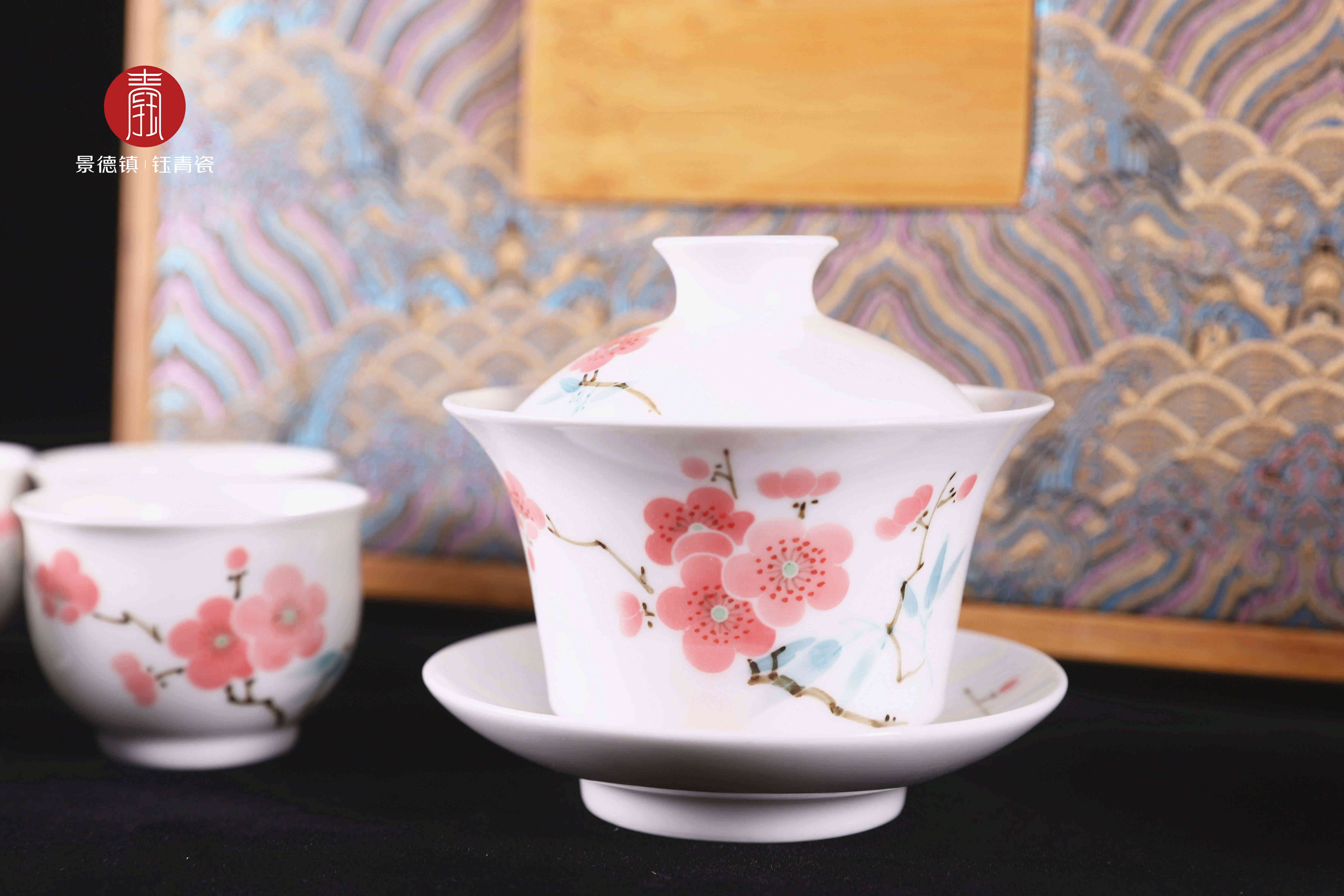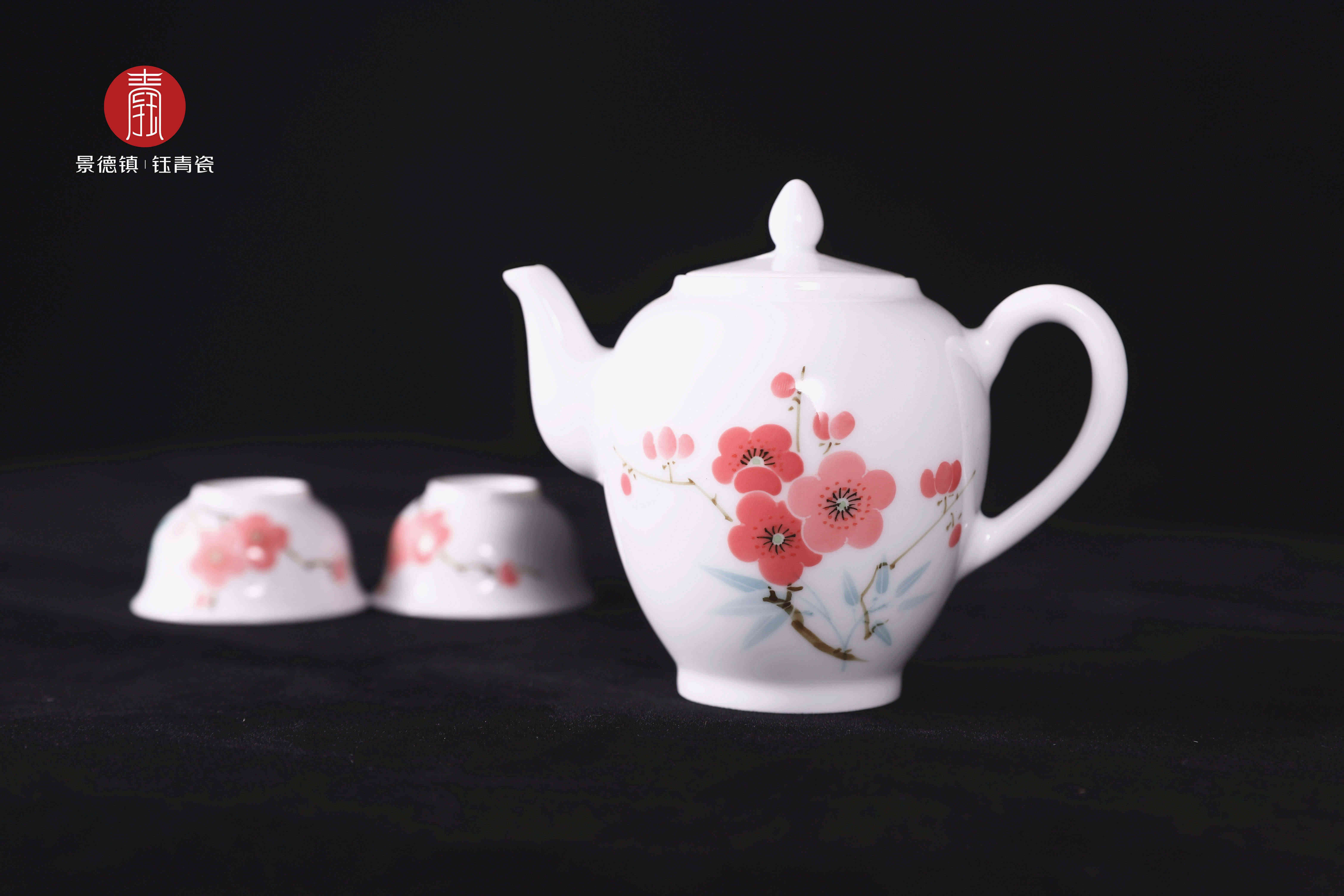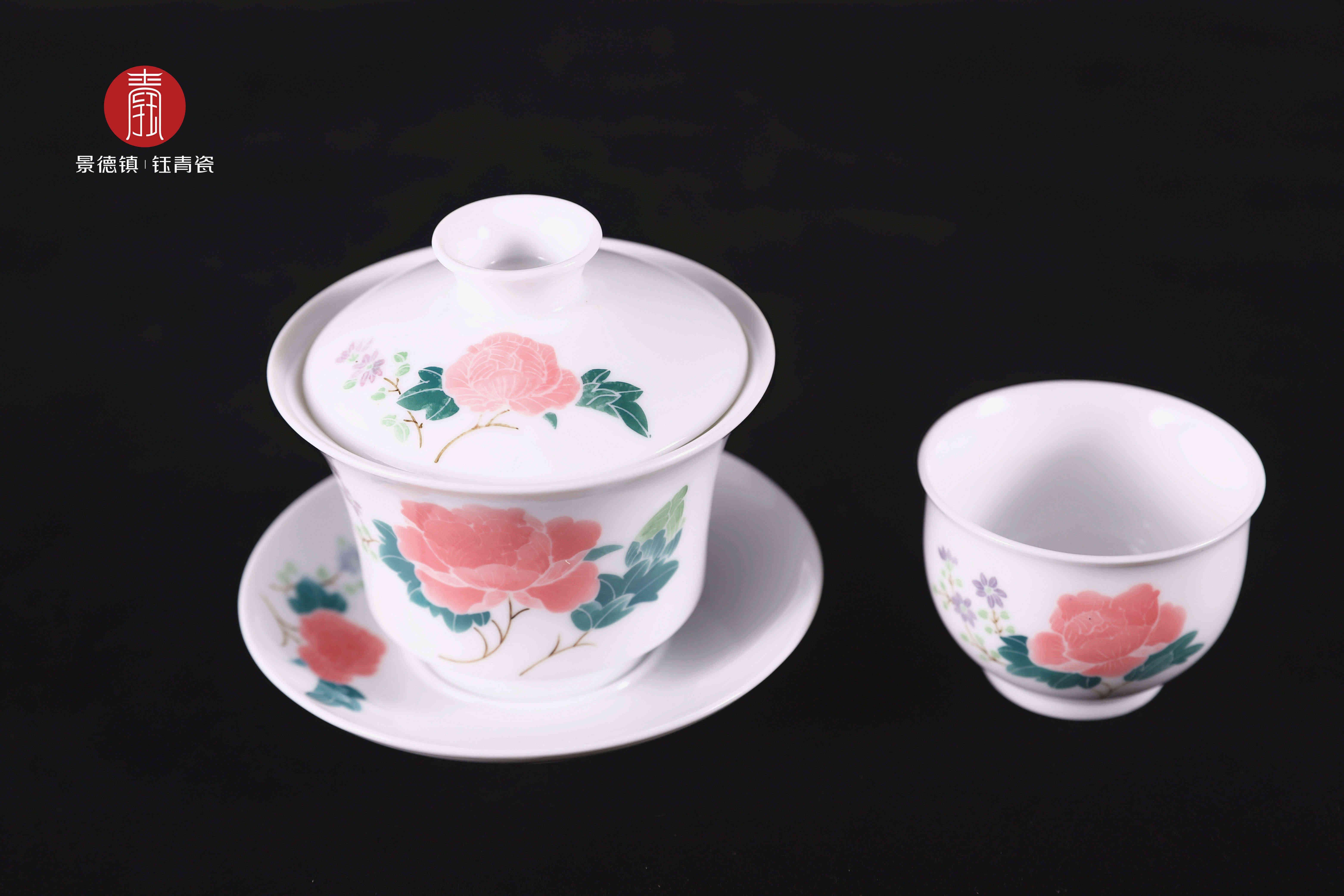 钰青粉彩瓷采用景德镇纯度最高的、独有的高岭土,瓷质细腻,釉面光洁。