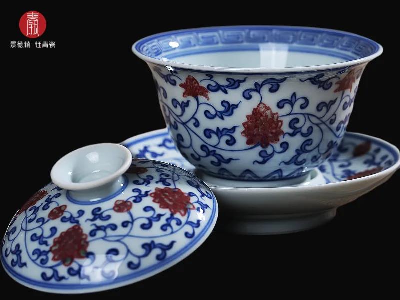 钰青青花釉里红采用景德镇特有、纯度最高的高白泥,沿袭传统手工制瓷技法,从揉泥、拉坯、利坯、画坯、施釉、烧窑等72道传统工序,全部由纯手工完成,每道工序都有着严苛的工艺要求,精益求精,品质更高。