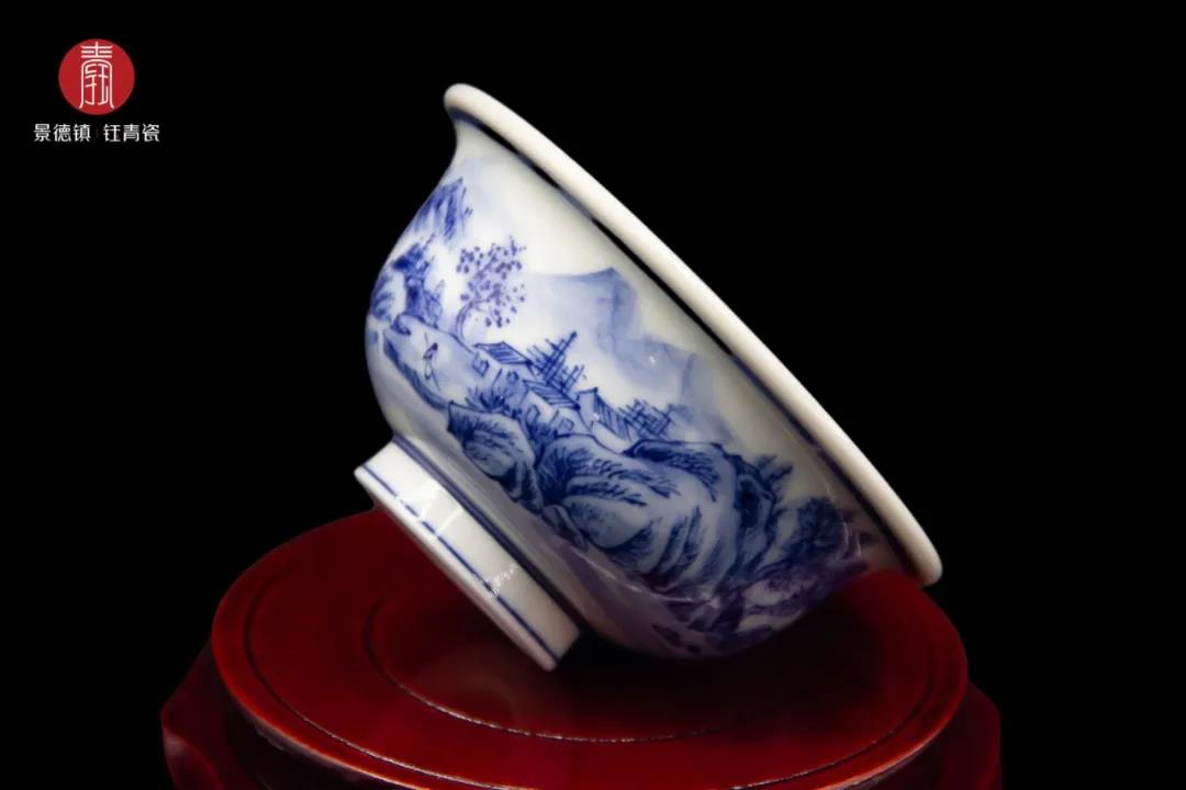 钰青青花瓷由顶级画工纯手工制作,笔墨浓淡适宜,意境深邃悠远,融情于画,融画于瓷,每一个都独一无二。青花釉下彩1380度高温烧制成器,白地蓝花,具有中国传统水墨画的效果,给人以清新素雅的美感。