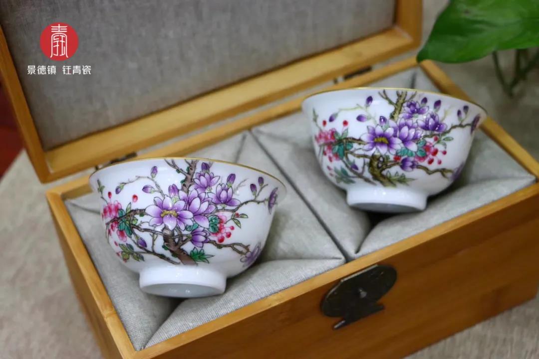 钰青粉彩主人杯采用景德镇纯度最高、独有的高白泥,历经72道工序制作而成,瓷质细腻,釉面光洁。