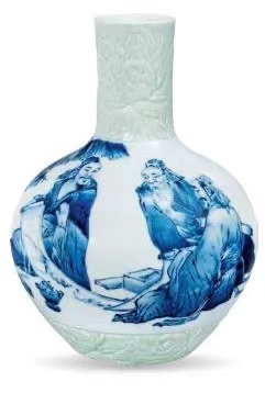 王贵彬(晨风),1976年出生于江西乐平。作品融入了中国传统文化精髓,题材涵盖佛教、道教、经典历史名著等,体现了“清静、恬澹”的东方哲学理念,呈现出一种凝重古朴典雅的青花艺术风采。