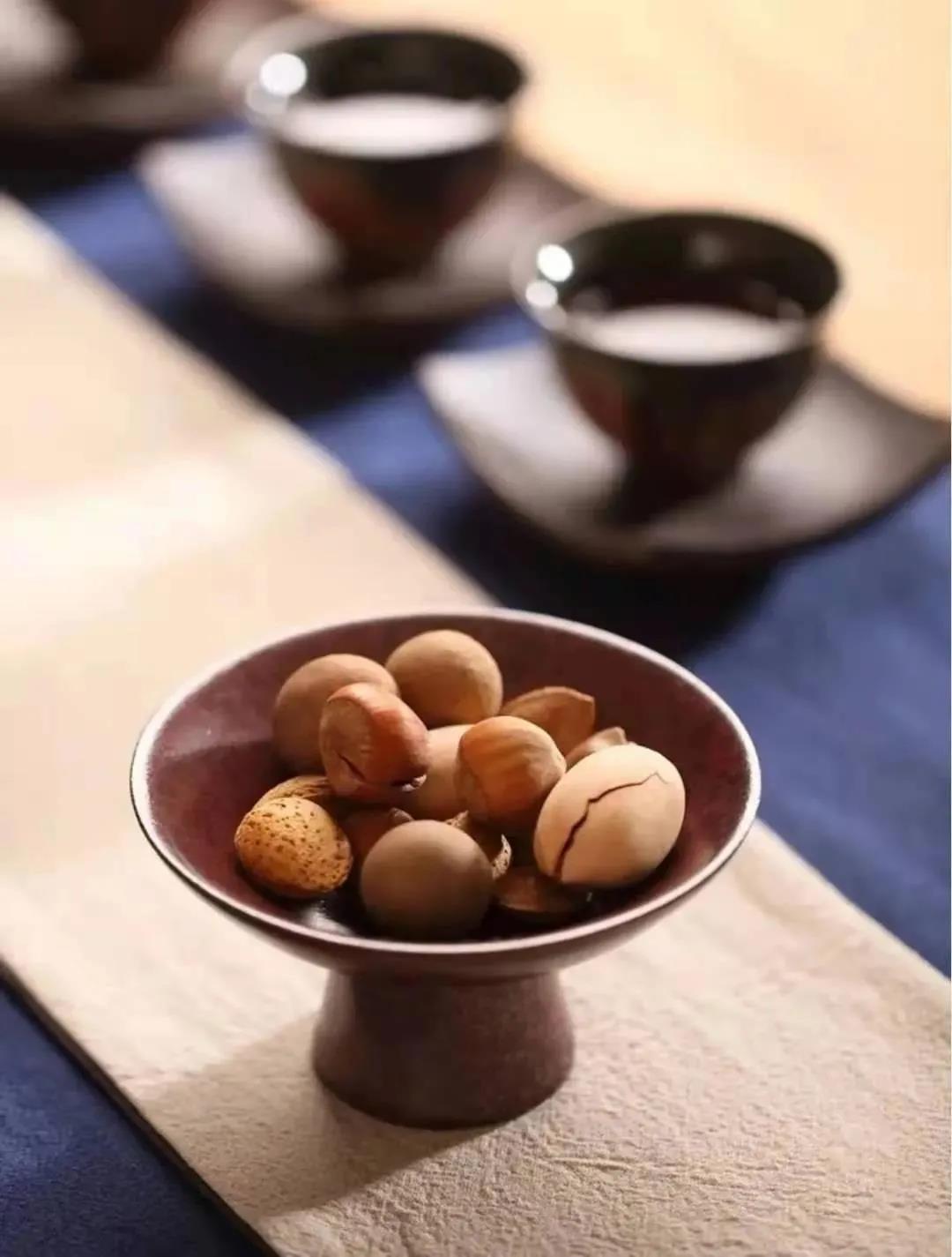 配茶点:坚果类、豆腐干、咸橄榄等咸鲜口味的点心