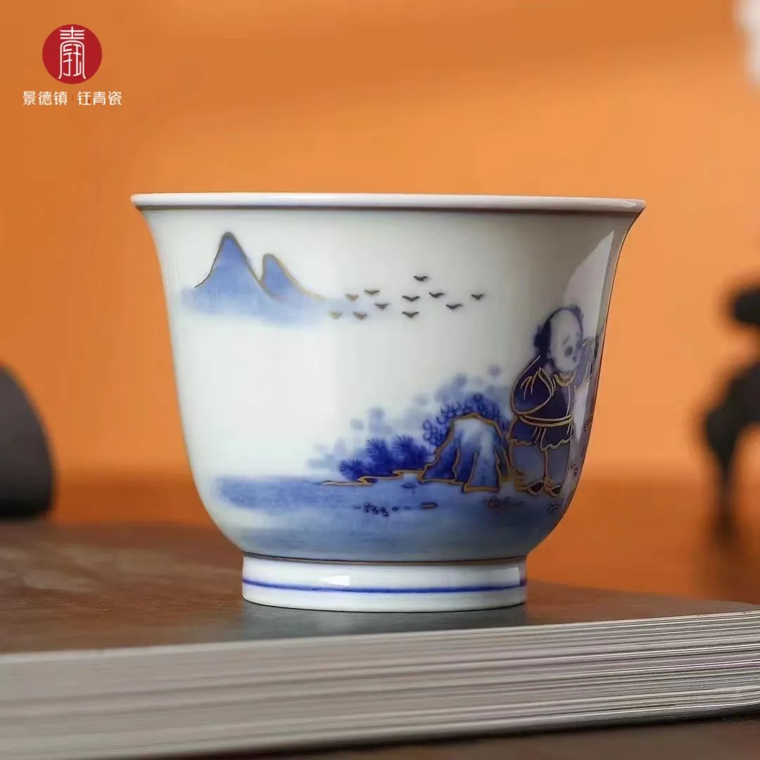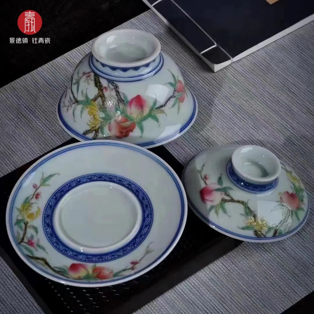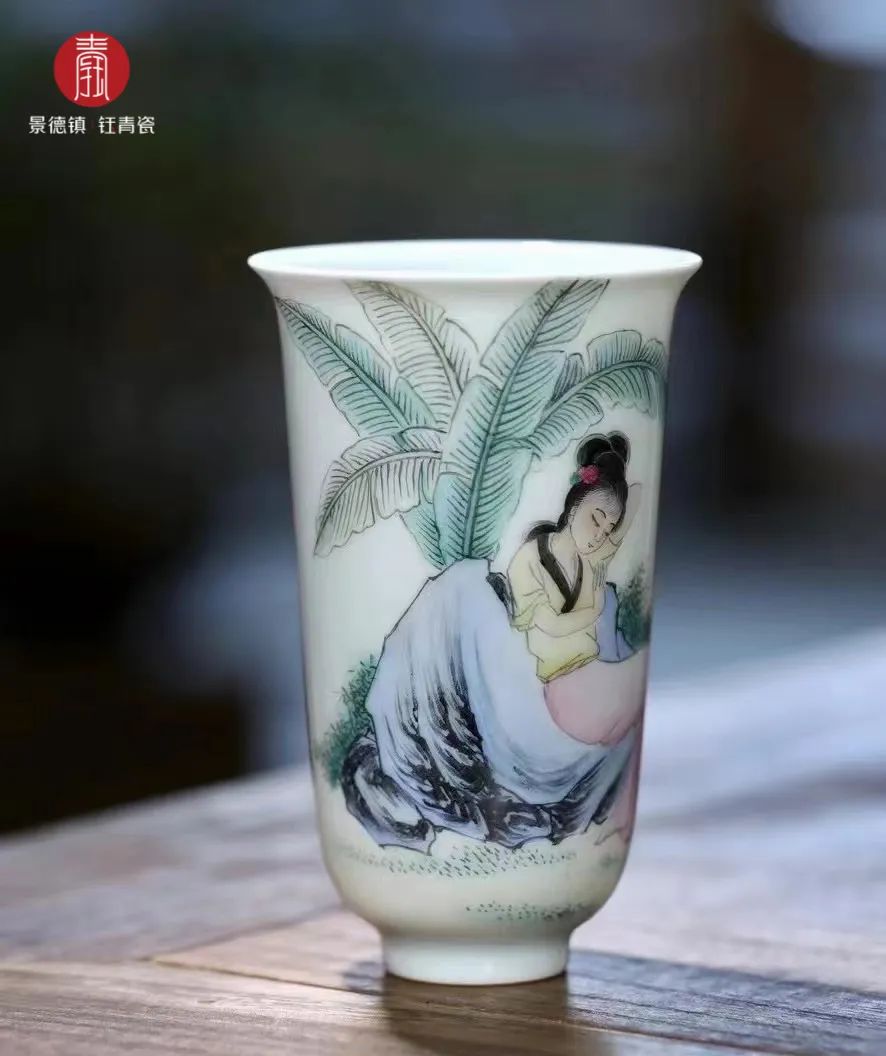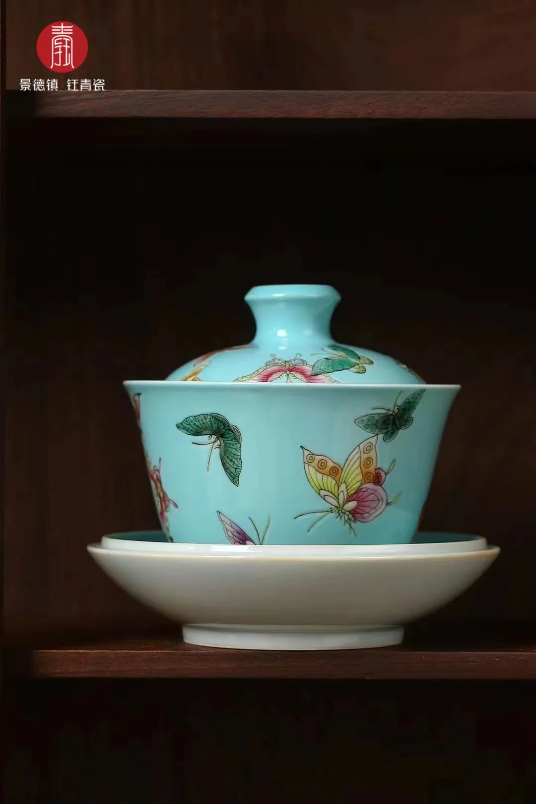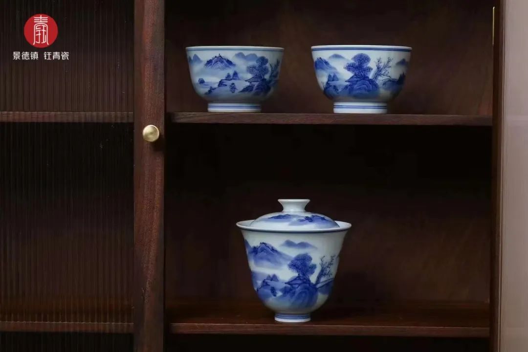钰青高品瓷纯手工制作,手工拉坯、手工绘制图案,耗时长,每款产量不多。一只钰青高品主人杯需要画线条2天,填颜色4天,普通的进窑烧制2次,特殊工艺的4次左右。