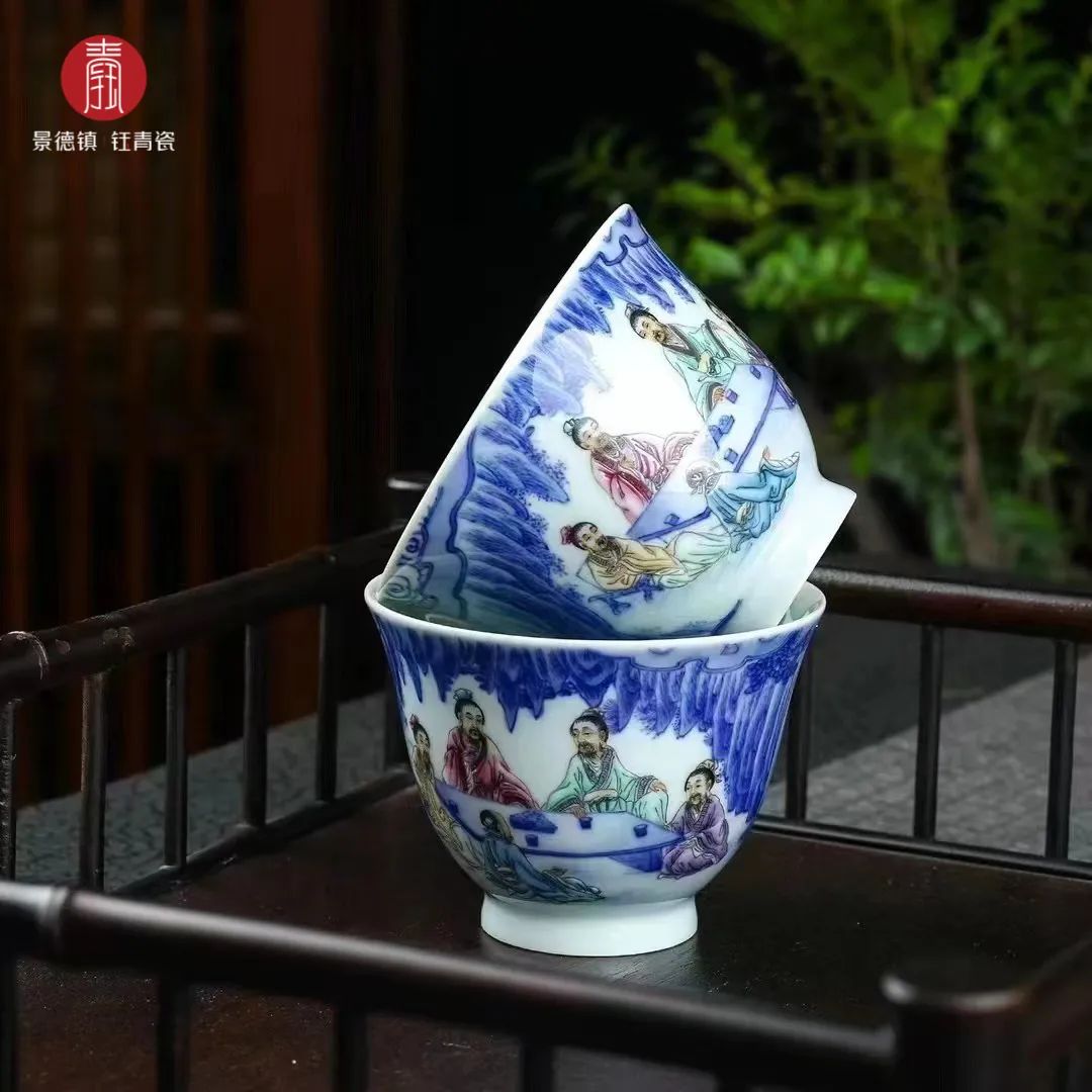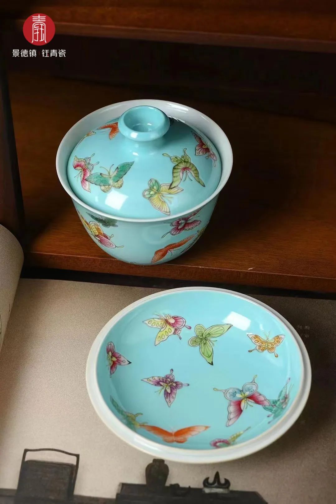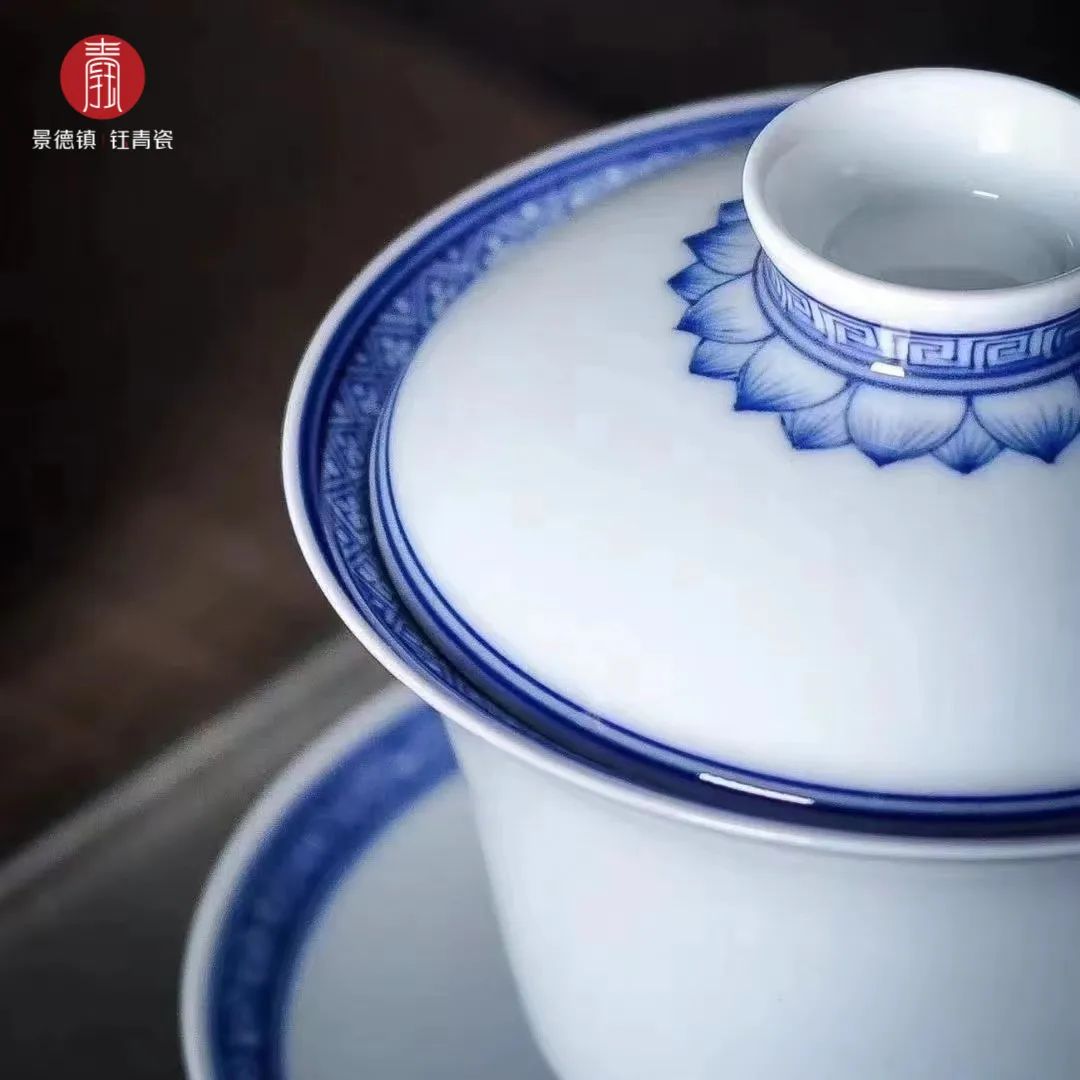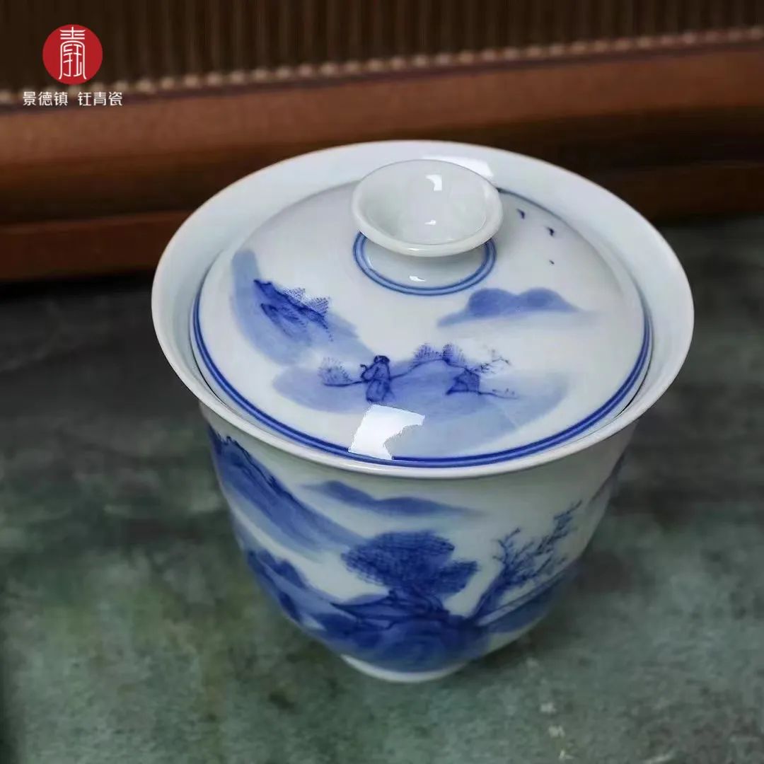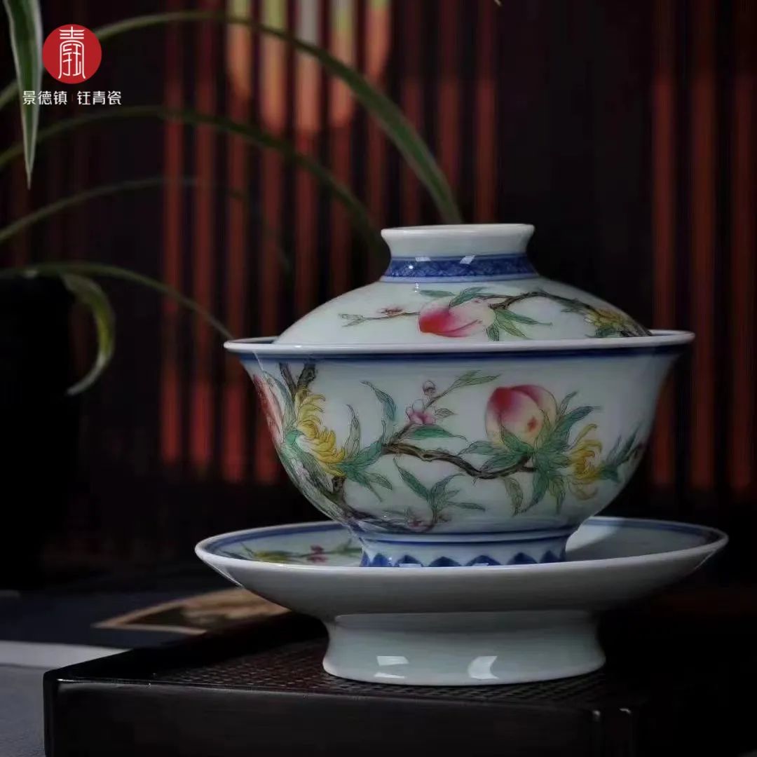 钰青高品瓷纯手工制作,手工拉坯、手工绘制图案,耗时长,每款产量不多。一只钰青高品主人杯需要画线条2天,填颜色4天,普通的进窑烧制2次,特殊工艺的4次左右。