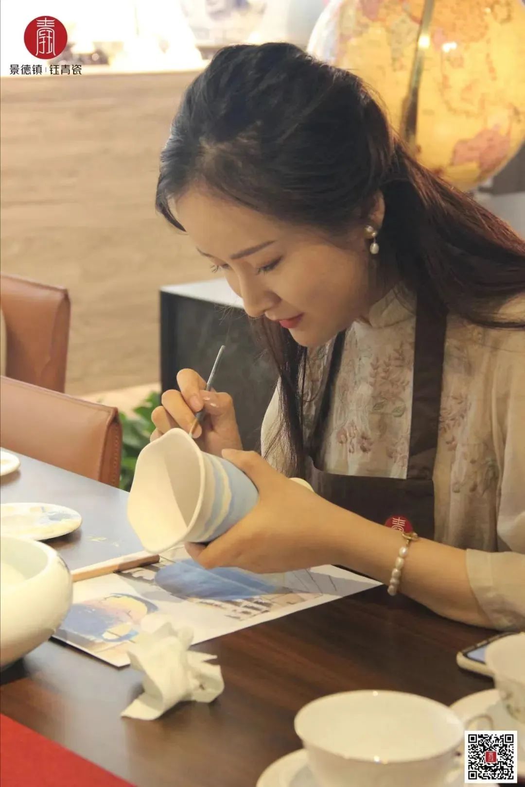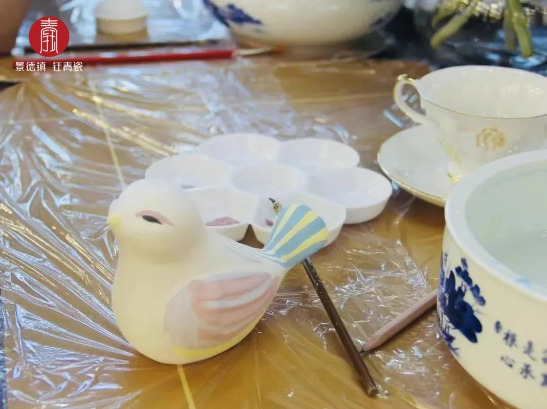 二、现场指导:使用钰青工厂画师颜料及景德镇高白泥素坯,作品10天左右烧制成瓷。
