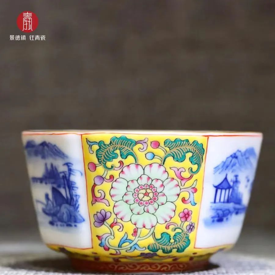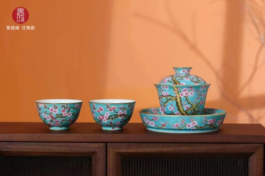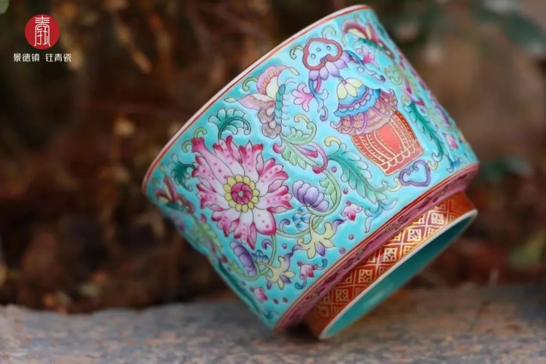 钰青珐琅瓷纯手工制作,手工拉坯、手工绘制图案,同时使用钰青专用颜料,颜色雅致,韵味无穷,每一只都不尽相同。款式上,钰青珐琅瓷有主人杯、艺术瓷、餐具等不同类型可供选择。
