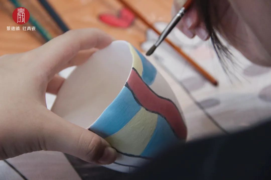 二、现场指导:使用钰青工厂画师颜料及景德镇高白泥素坯,作品10天左右烧制成瓷。