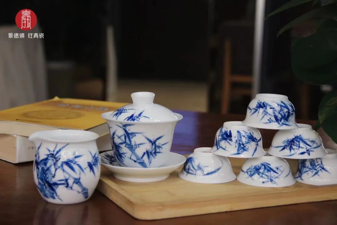 钰青青花瓷由由景德镇10年以上绘制功底的手艺人纯手工绘制,耗时长,每一个都独一无二。青花釉下彩1380度高温烧制成器,白地蓝花,具有中国传统水墨画的效果,给人以清新素雅的美感。款式上,钰青青花瓷有茶具、主人杯、艺术瓷、餐具等不同类型可供选择。