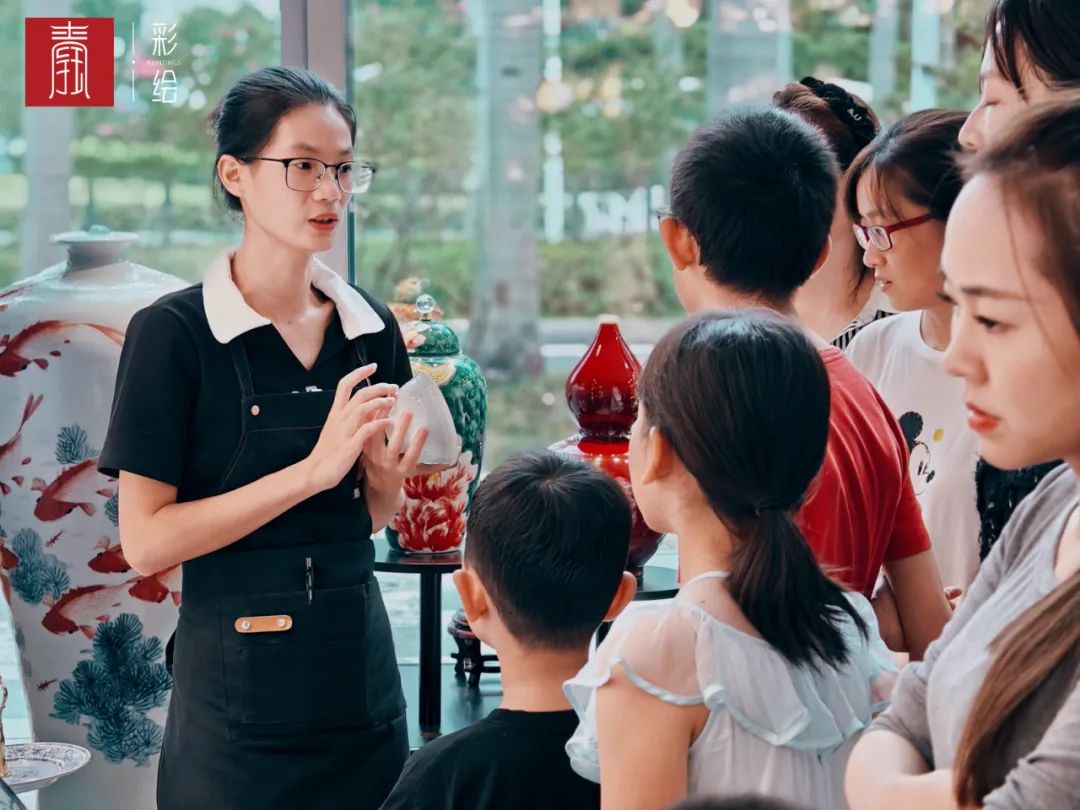 活动分为两个部分:第一个部分:介绍景德镇千年制瓷历史及特点。从历史溯源、制作工艺、技艺传承等多方面呈现出瓷文化,分享景德镇陶瓷特点如何分辨景德镇瓷、潮州瓷及其他瓷。