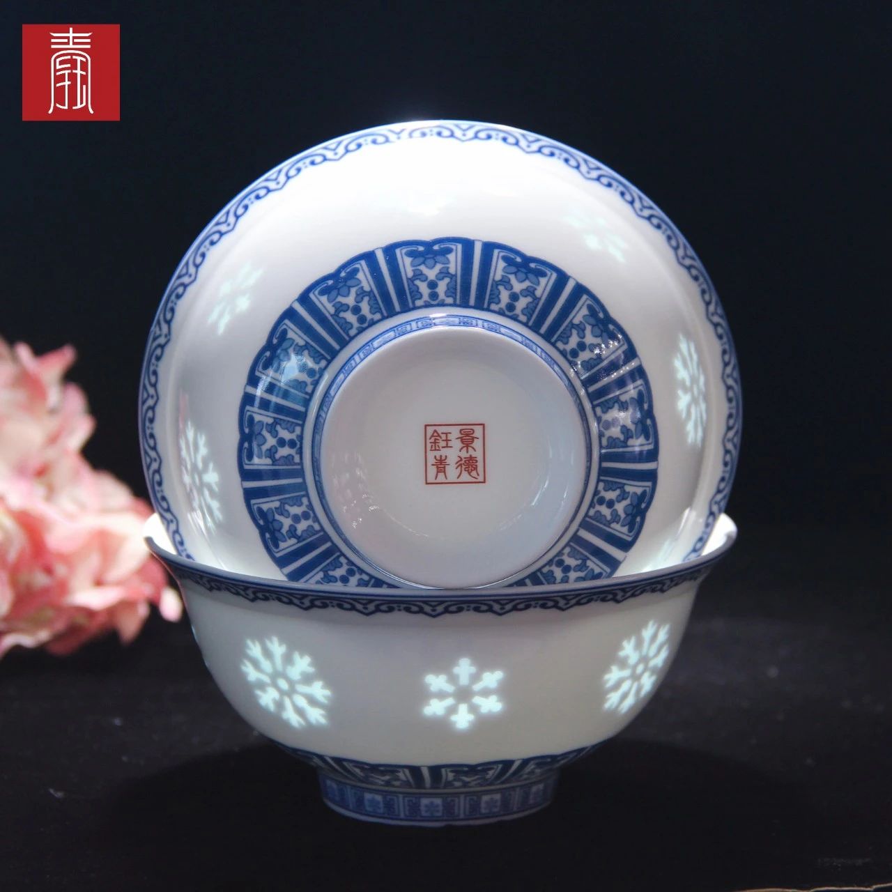 瓷胎洁白细腻,釉面莹润如玉