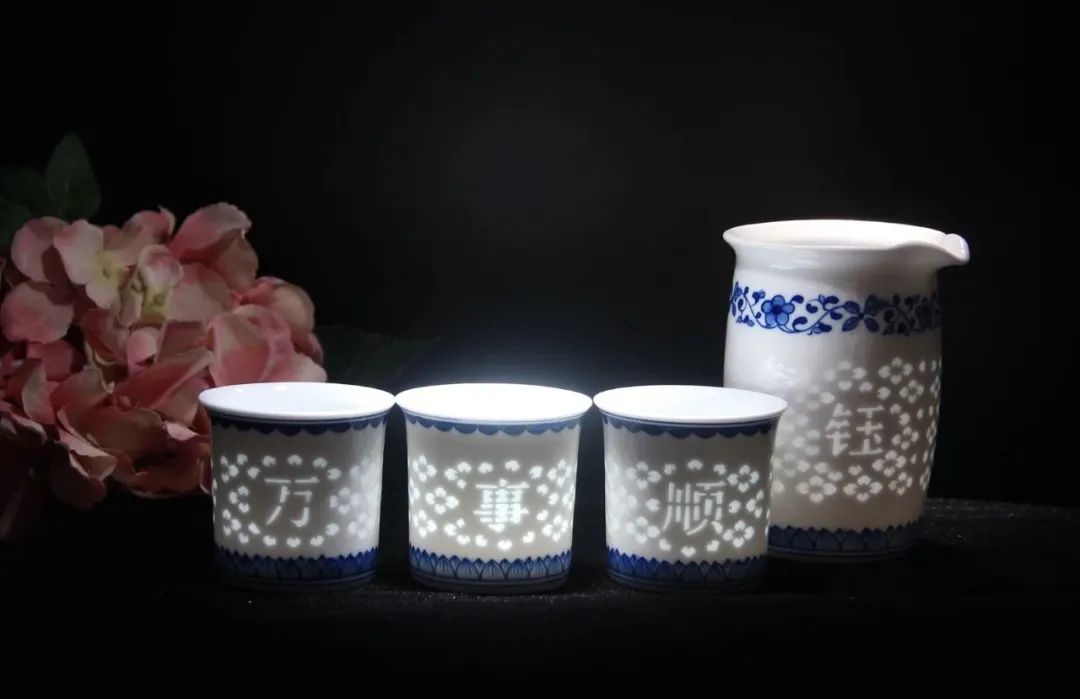 (景德钰青定制 |手绘青花玲珑茶具·万事顺钰)