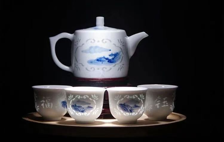 2021年,海上世界文化艺术中心V&A博物馆《设计的价值在中国》展出钰青老瓷-青花加彩玲珑2022年,批量定制中集集团CIMC白玉玲珑杯,中建一局CSCEC办公杯,为招商蛇口批量定制【钰如意系列】办公杯;前海蛇口自贸投资发展有限公司定制【欢喜系列】白玉玲珑茶器