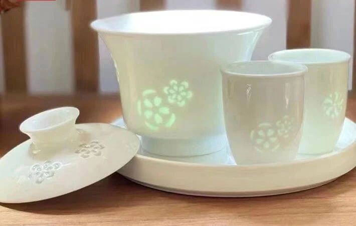 (景德钰青定制 | 招商美伦南海颂皮球花白玉玲珑茶器)