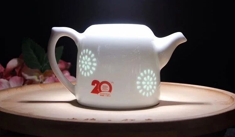2021年,海上世界文化艺术中心V&A博物馆《设计的价值在中国》展出钰青老瓷-青花加彩玲珑2022年,批量定制中集集团CIMC白玉玲珑杯,中建一局CSCEC办公杯,为招商蛇口批量定制【钰如意系列】办公杯;前海蛇口自贸投资发展有限公司定制【欢喜系列】白玉玲珑茶器