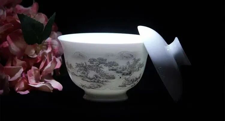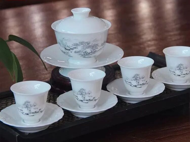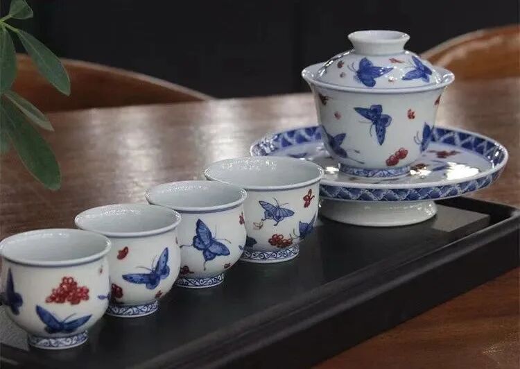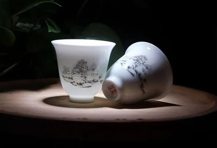 材质要够硬核(高白泥+纯手工釉下彩,喝茶喝出玉质感)