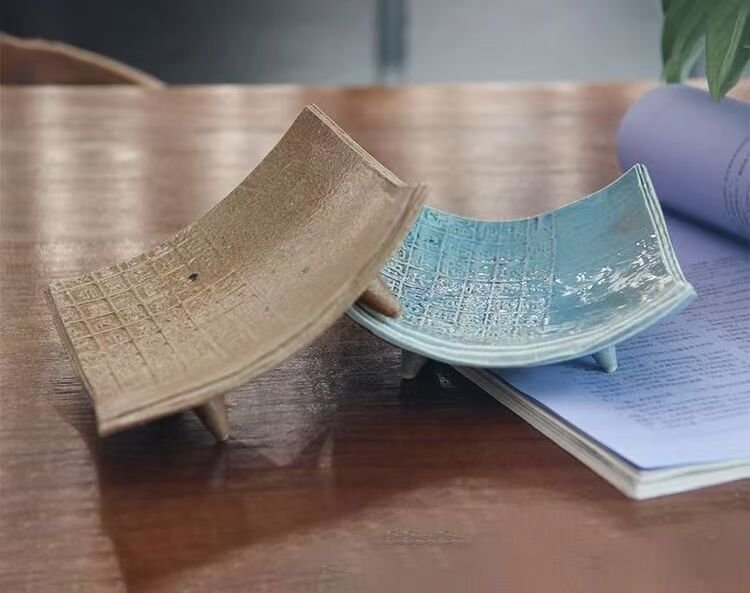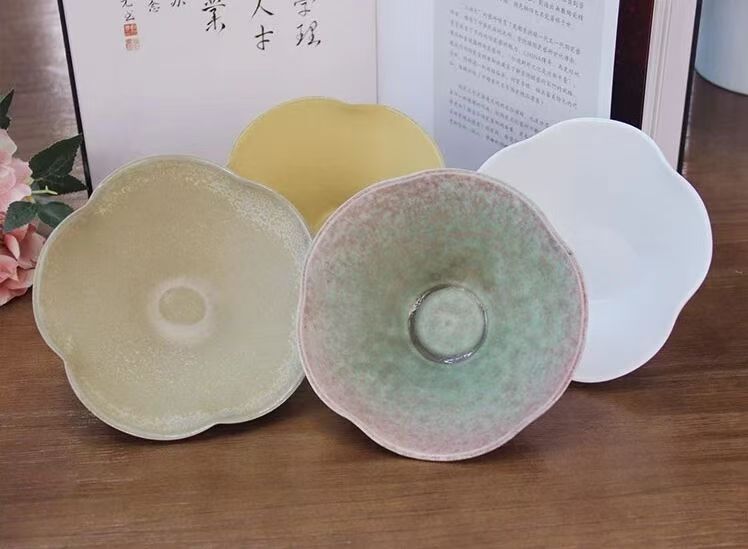 茶席之上,仿宋青瓷的器型设计暗藏巧思。撇口盏、折腰盘、弦纹壶,每一款都复刻宋代经典器型,线条简约流畅,不事雕琢却尽显风骨。盏沿弧度贴合唇齿,壶型聚香锁温,恰适配宋式点茶、分茶的仪式感,让春分新茶的鲜爽本味完整释放。更可定制专属印记,在瓷底刻上姓氏、雅号或“春分雅集”等字样,让茶席更具专属韵味。