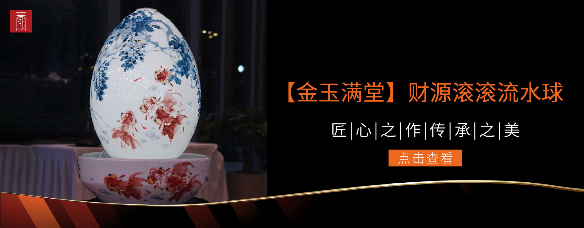 景德钰青·财源滚滚流水瓶【金玉满堂】