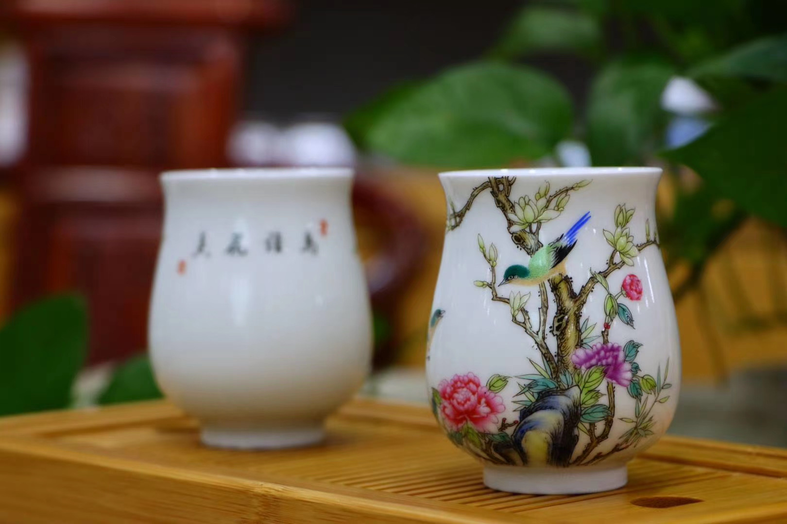 款式上,钰青手绘瓷有艺术瓷、餐具、茶具、主人杯等不同类型可供选择。
