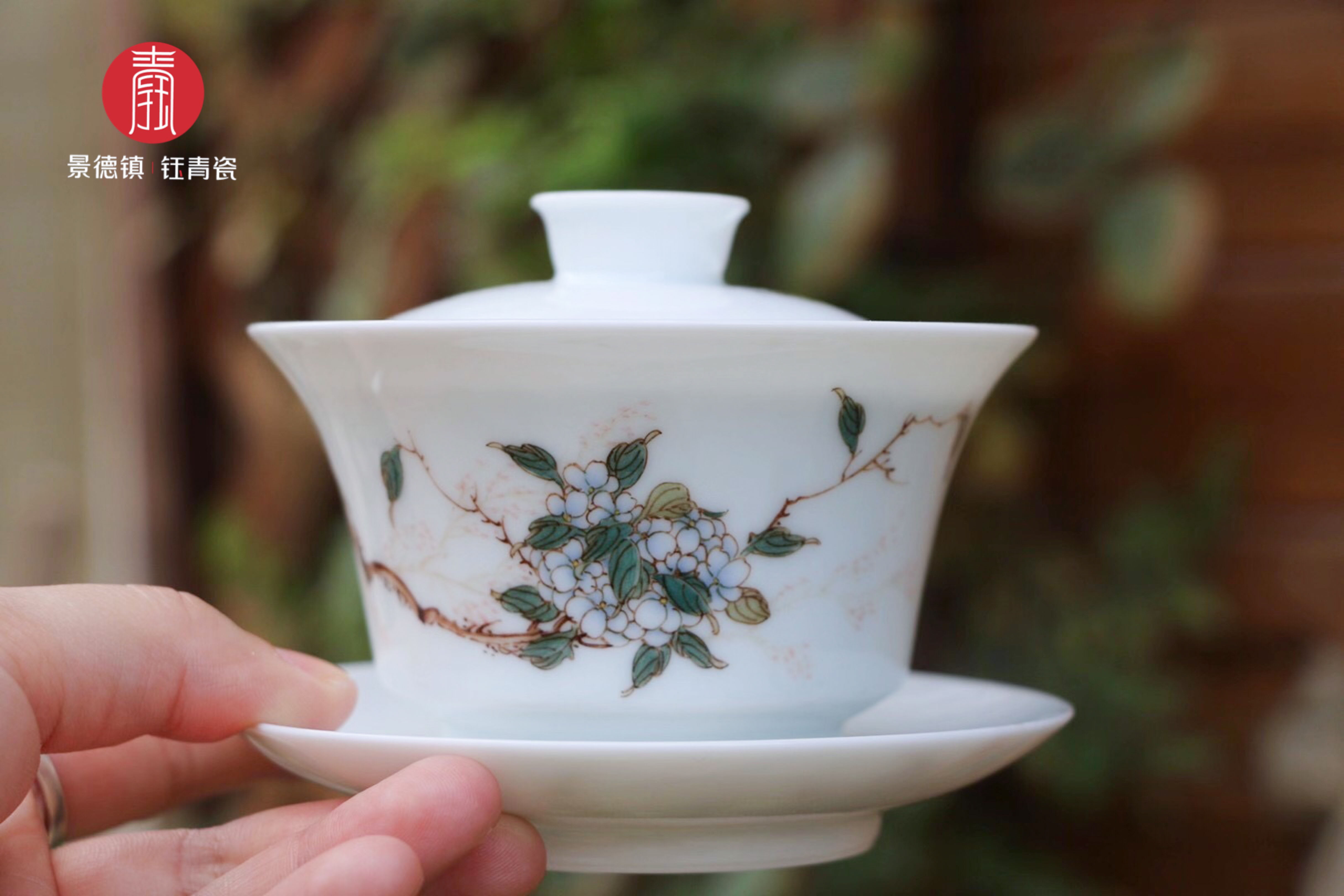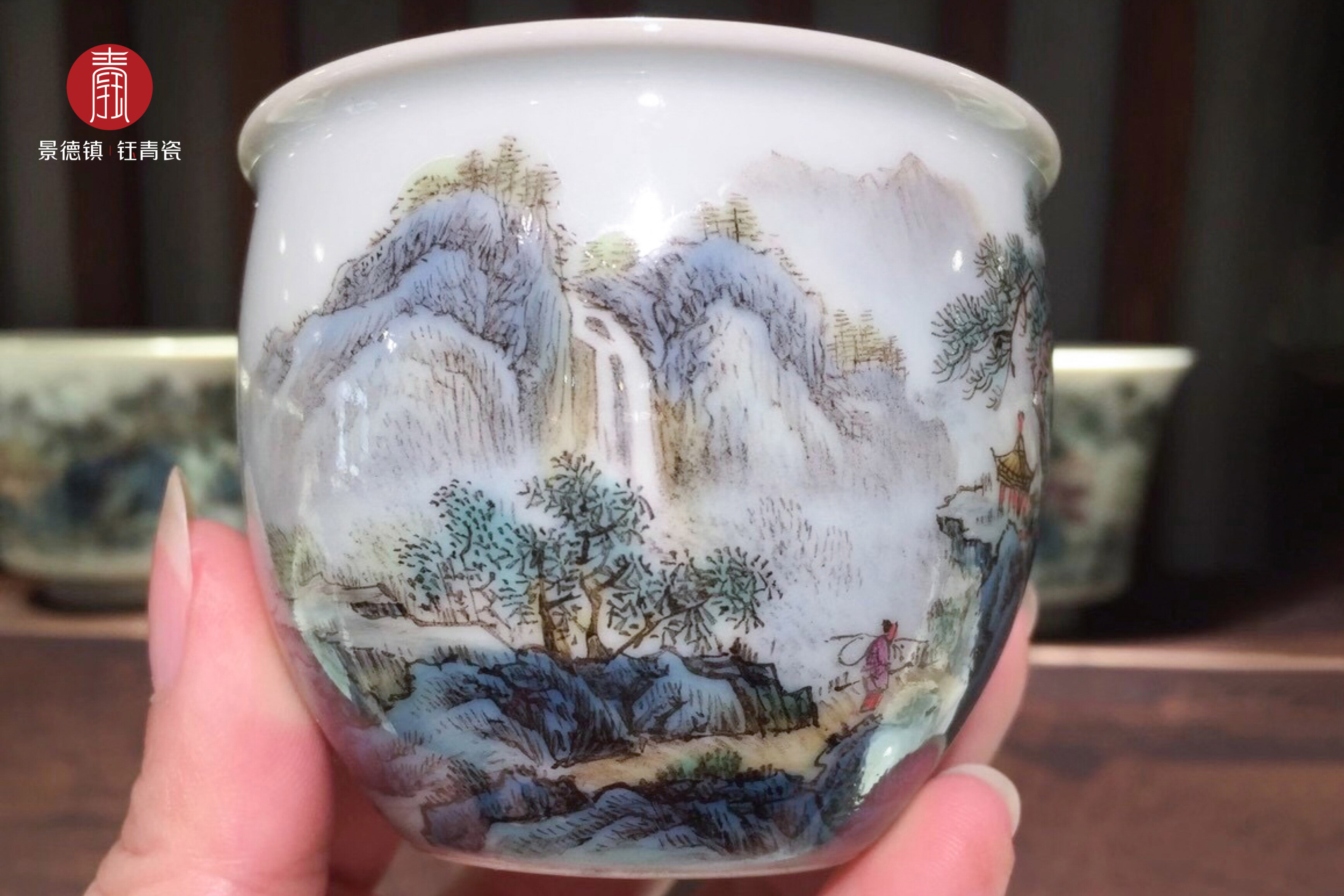 钰青粉彩瓷采用景德镇纯度最高的高岭土,瓷质细腻,釉面光洁;景德镇顶级匠人纯手工绘制,一笔一画都是经典;同时使用钰青专用颜料,颜色雅致,韵味无穷,每一只都不尽相同。