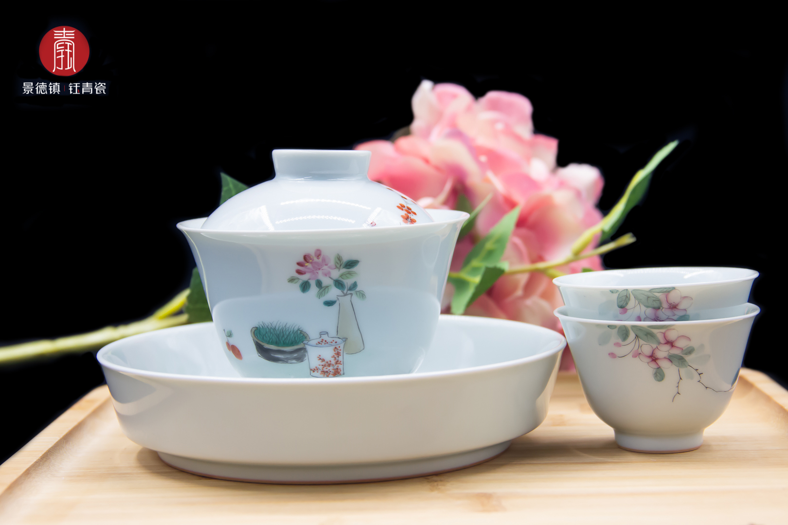 款式上,钰青手绘瓷有茶具、主人杯、艺术瓷、餐具等不同类型可供选择。