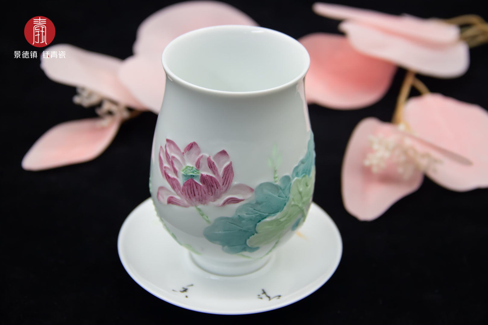钰青玲珑瓷采用景德镇纯度最高的、独有的高岭土经1380度高温烧制而成,胎质细腻,釉质莹润。