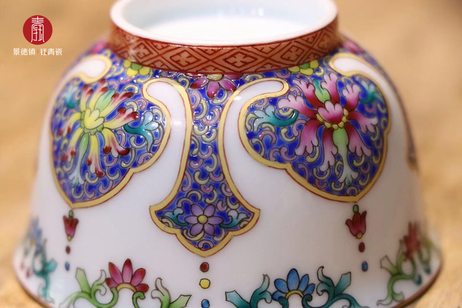 钰青珐琅瓷采用景德镇纯度最高的、独有的高岭土经1380度高温烧制而成,胎质细腻,釉质莹润。