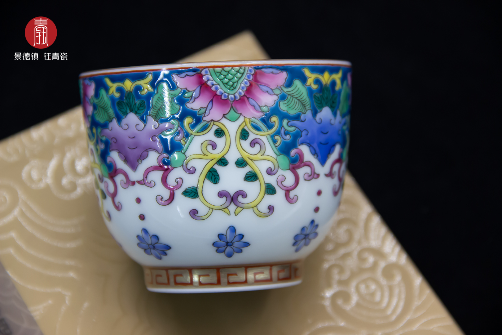 钰青珐琅彩主人杯纯手工制作,手工拉坯、手工绘制图案,同时使用钰青专用颜料,颜色雅致,韵味无穷,每一只都不尽相同。