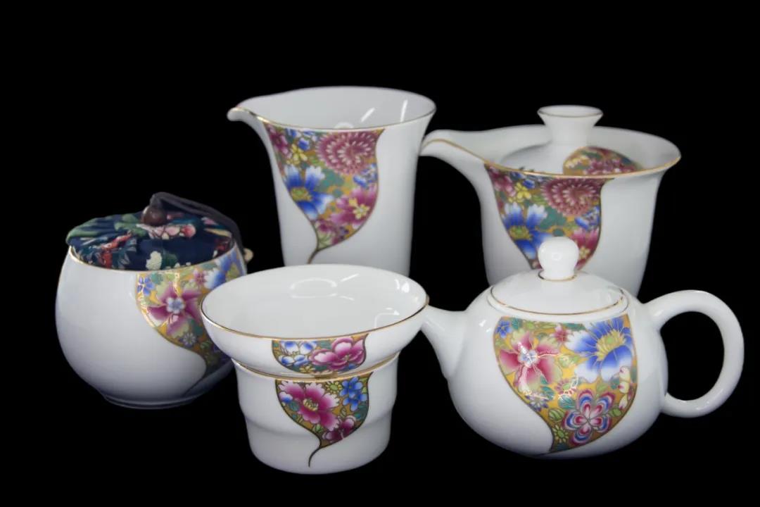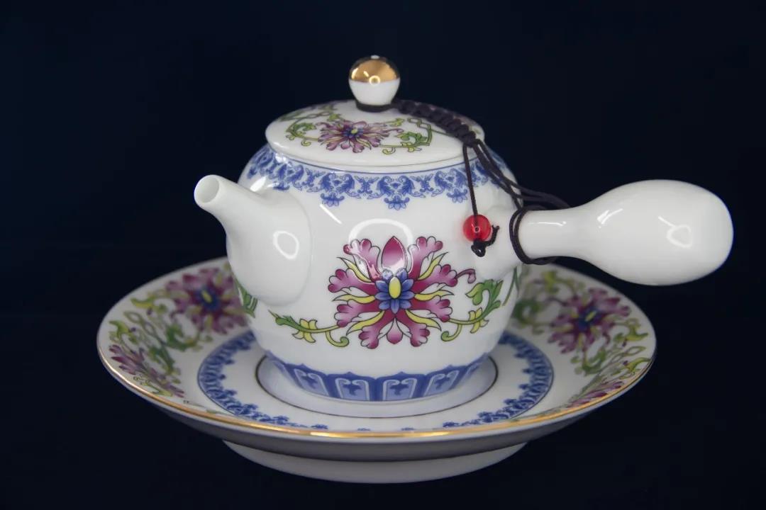 钰青茶具采用景德镇纯度最高的、独有的高岭土,经1380度高温烧制,瓷质细腻,釉面光洁。同时使用钰青专用颜料,颜色雅致,温润如玉,流光溢彩。