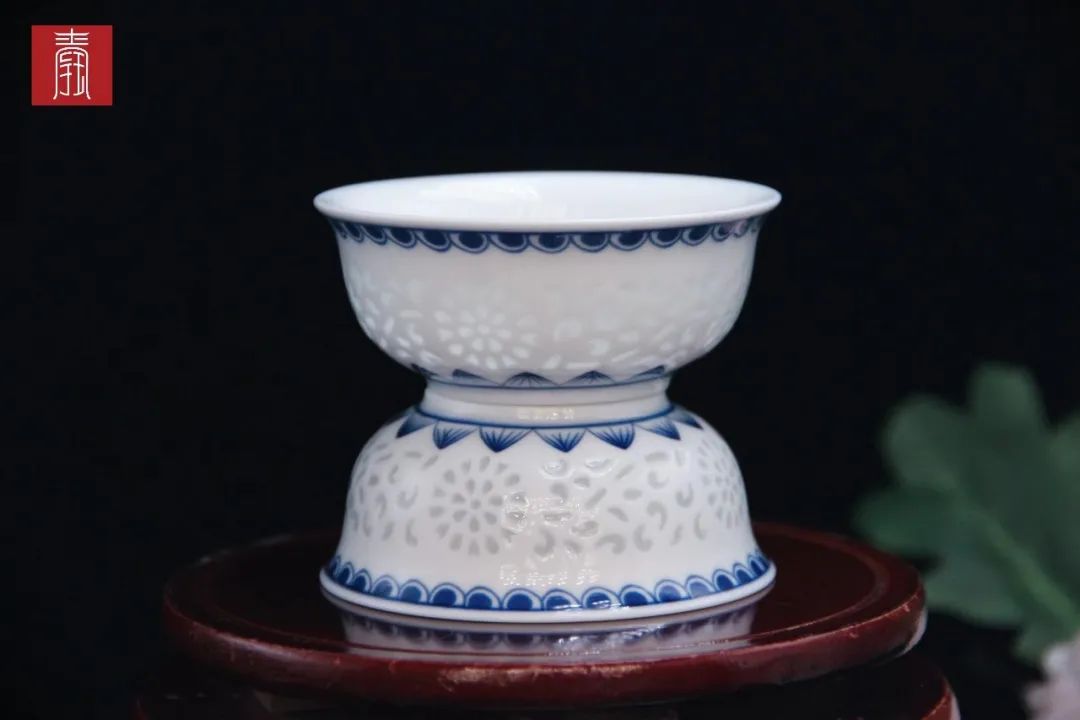 晶莹剔透、幽雅的青花玲珑瓷,既汲取了青花技术之特长,又融汇了镂空雕花艺术之妙法,具有精巧致密,素雅清新的特点,因瓷器上有米粒状的玲珑眼,犹如剪纸窗花般通透自然,观之绝妙,引得日本人赞誉为“米花”或“米通”。
