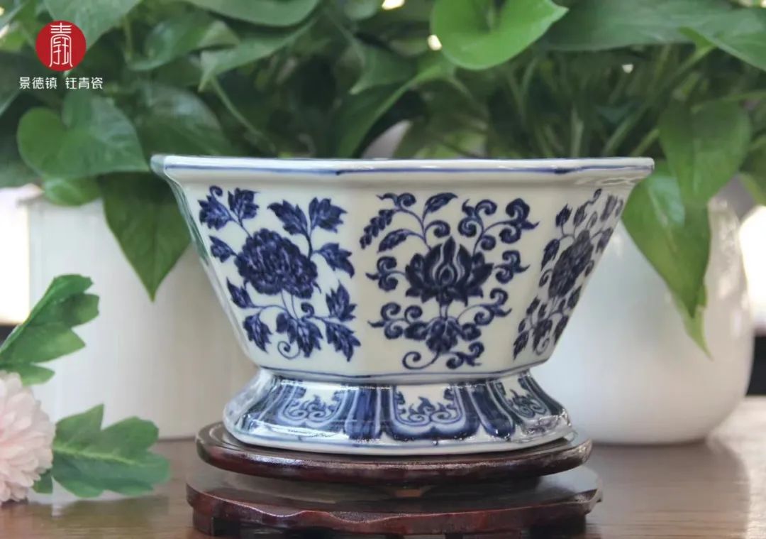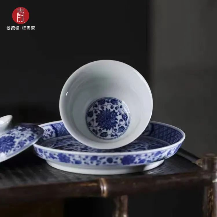 钰青青花瓷采用景德镇纯度最高的、独有的高岭土烧制,胎质细腻,釉质莹润。