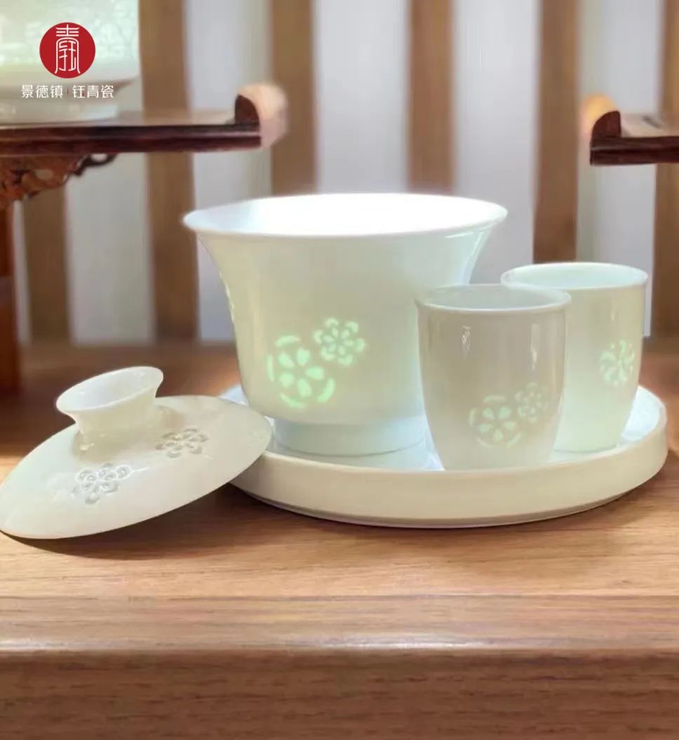 钰青白玲珑瓷纯手工制作,手工利坯、手工玲珑镂雕、手工填玲珑釉,匠心制作,弥足珍贵。款式上,钰青白玲珑瓷有茶具、主人杯、艺术瓷、餐具等不同类型可供选择。