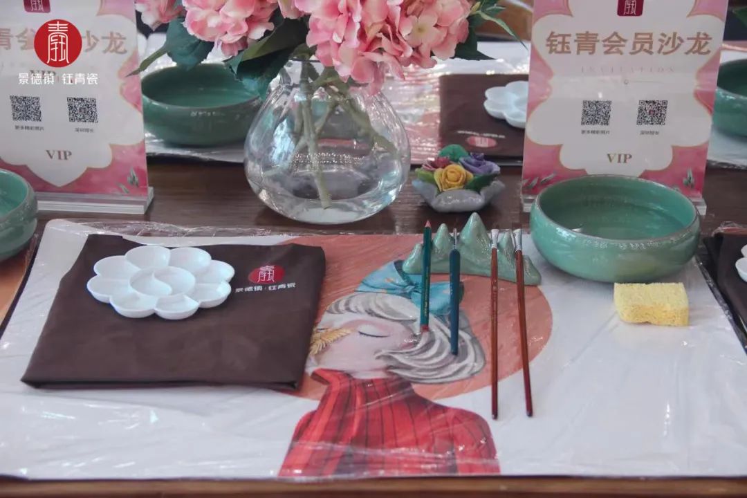 二、现场指导:使用钰青工厂画师颜料及景德镇高白泥素坯,作品10天左右烧制成瓷。