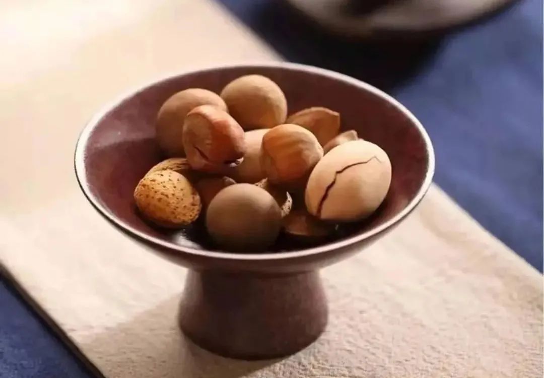 配茶点:坚果类、豆腐干、咸橄榄等咸鲜口味的点心