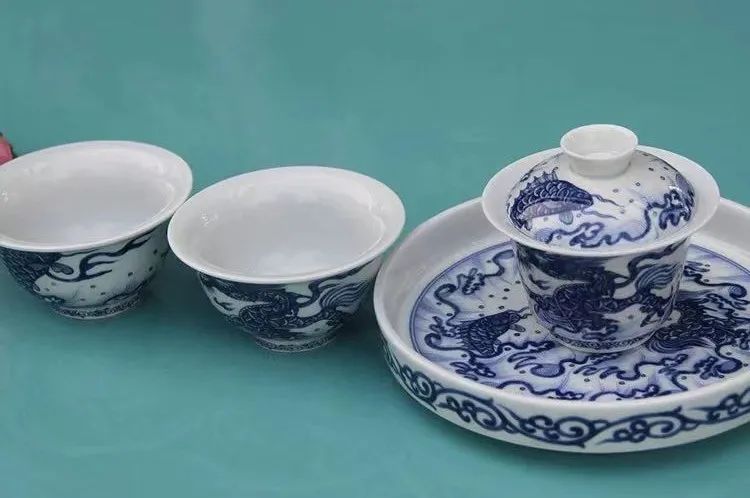 青花如意纹茶器:端午节吃腻了,来一杯清茶,天青色等烟雨的颜色,实用更显文化底蕴;