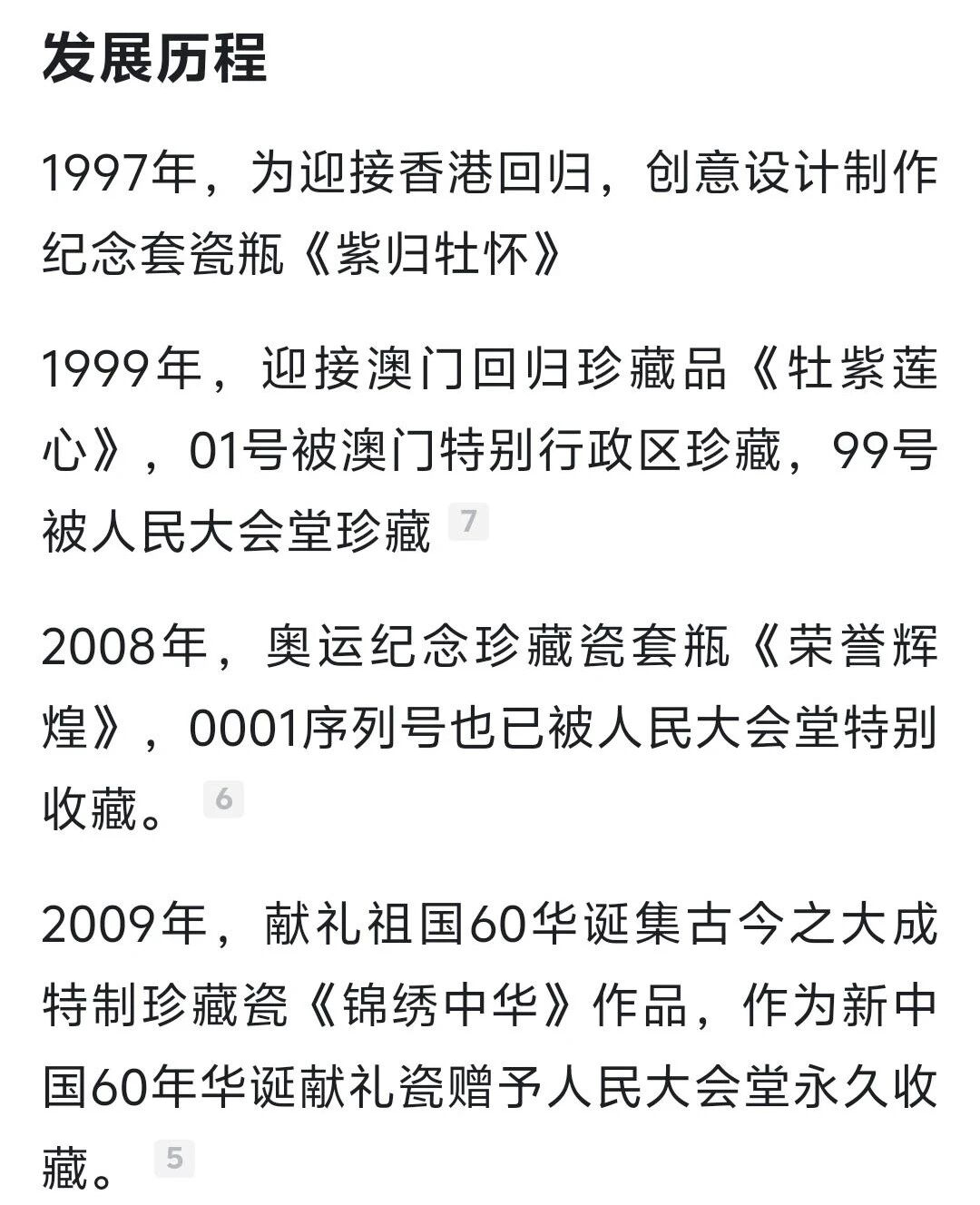 2008年,奥运纪念珍藏瓷套瓶《荣誉·辉煌》,其中0001号被人民大会堂永久珍藏。