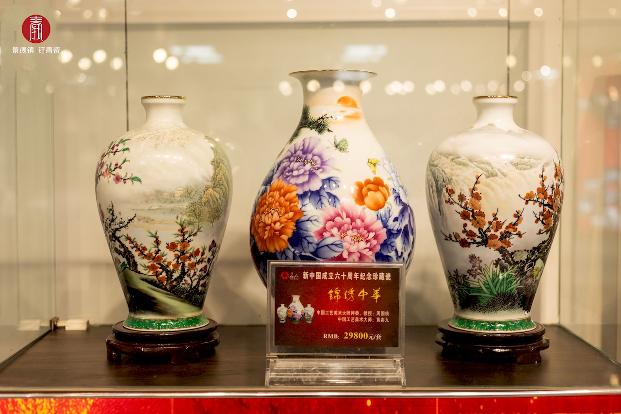 • 2009年,献礼祖国60华诞集古今之大成特制珍藏瓷《锦绣中华》,集景德镇釉上彩工艺之大全,难度极高,第001号被北京人民大会堂永久珍藏。